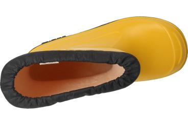 Gummistiefel in zitrone/blau. Das Innenmaterial besteht aus 100% Polyester.