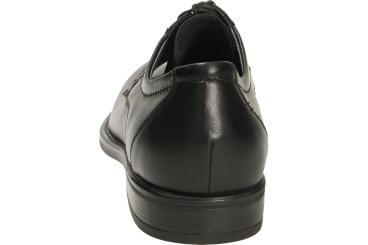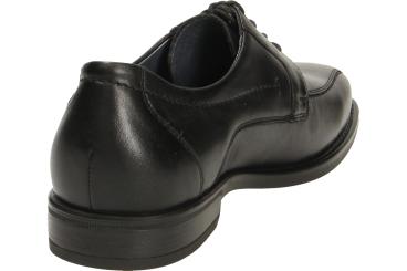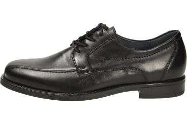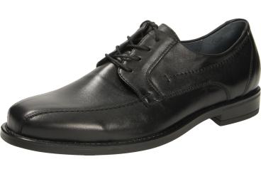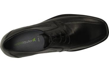 Klassischer Herrenschuhe von Waldläufer mit gerader Blattnaht, klassischem schwarzem glattem Leder, niedrigem Absatz und angenehm zu tragen dank Gummisohle